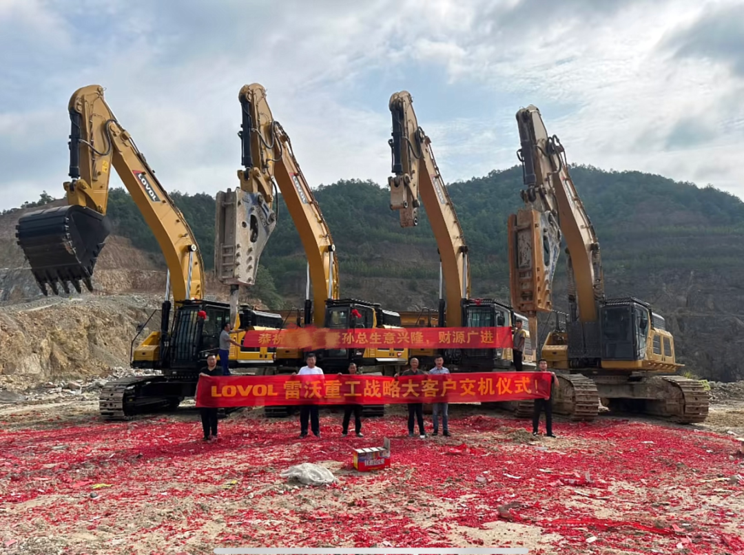 在江西,雷沃FR560F挖掘機批量交付。此次交付的雷沃FR560F挖掘機,全新雷沃重工“液壓動力總成”產品,其搭載“濰柴發動機+濰柴主泵+濰柴主閥”,動力強,油耗低,配備鏟斗、破碎錘兩種屬具,左挖掘、右破碎,為孫總礦山高效開采保駕護航。