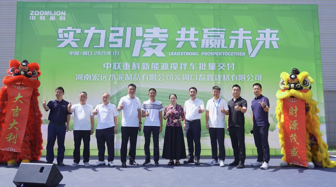 七月盛夏,中原大地生機(jī)勃發(fā)。近日,中聯(lián)重科“凌冠”新能源攪拌車批量交付河南宏遠(yuǎn)水泥制品有限公司、周口磊鑫建材有限公司,周口市住建局相關(guān)領(lǐng)導(dǎo)現(xiàn)場見證。此次交付將有力推動周口市商品混凝土運(yùn)輸?shù)木G色轉(zhuǎn)型,為河南“雙碳”目標(biāo)的實(shí)現(xiàn)注入新動能。