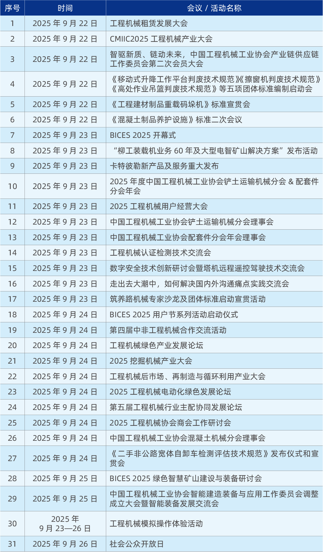 距9月23—26日中國(guó)(北京)國(guó)際工程機(jī)械、建材機(jī)械及礦山機(jī)械展覽會(huì)(BICES 2025)開幕倒計(jì)時(shí)40天之際,BICES組委會(huì)正式發(fā)布了首批展會(huì)同期活動(dòng),豐富的同期高質(zhì)量活動(dòng)是BICES明顯區(qū)別其他展會(huì)的特色之一,這也是繼近日發(fā)布首批展商名單和觀眾邀請(qǐng)函后,BICES 2025在展前的又一重要發(fā)布。