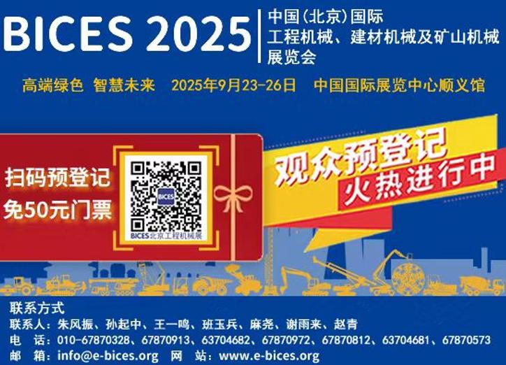 2025年9月23—26日,中國(北京)國際工程機械、建材機械及礦山機械展覽會(BICES 2025)將在中國國際展覽中心順義館舉辦。預計現場將匯聚超15萬人次來自國內和全球工程機械、建材機械以及礦山、港口、交通、市政、水利、電力、化工等領域的用戶和觀眾,與展商朋友一起共襄盛舉。