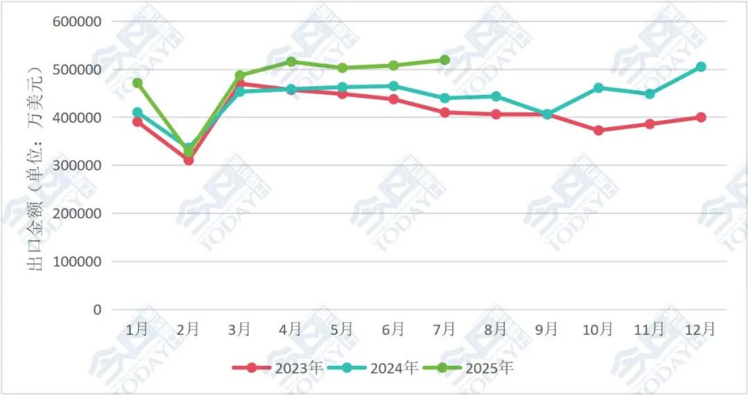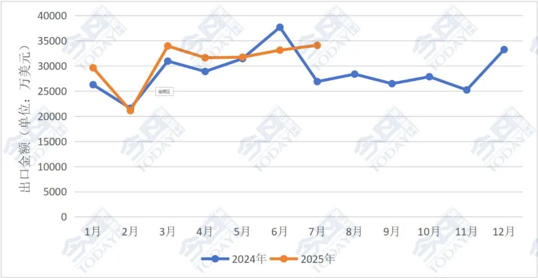 2025年7月,我國裝載機出口總額為3.41億美元,較6月的3.31億美元增長2.91%,與2024年同期相比,同比增長26.85%,上升幅度明顯。