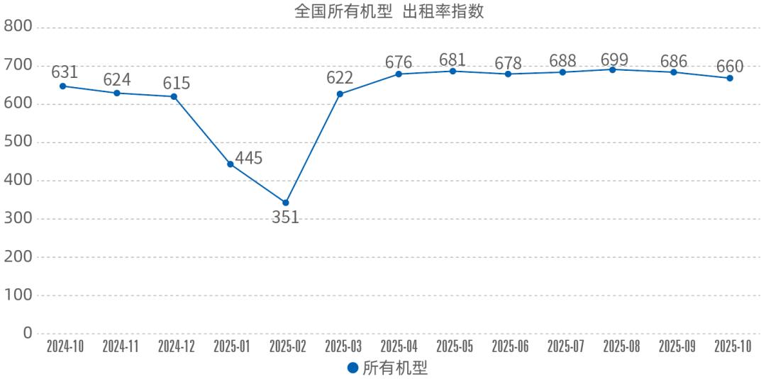 2025年10月升降工作平臺租賃行業(yè)出租率指數(shù)