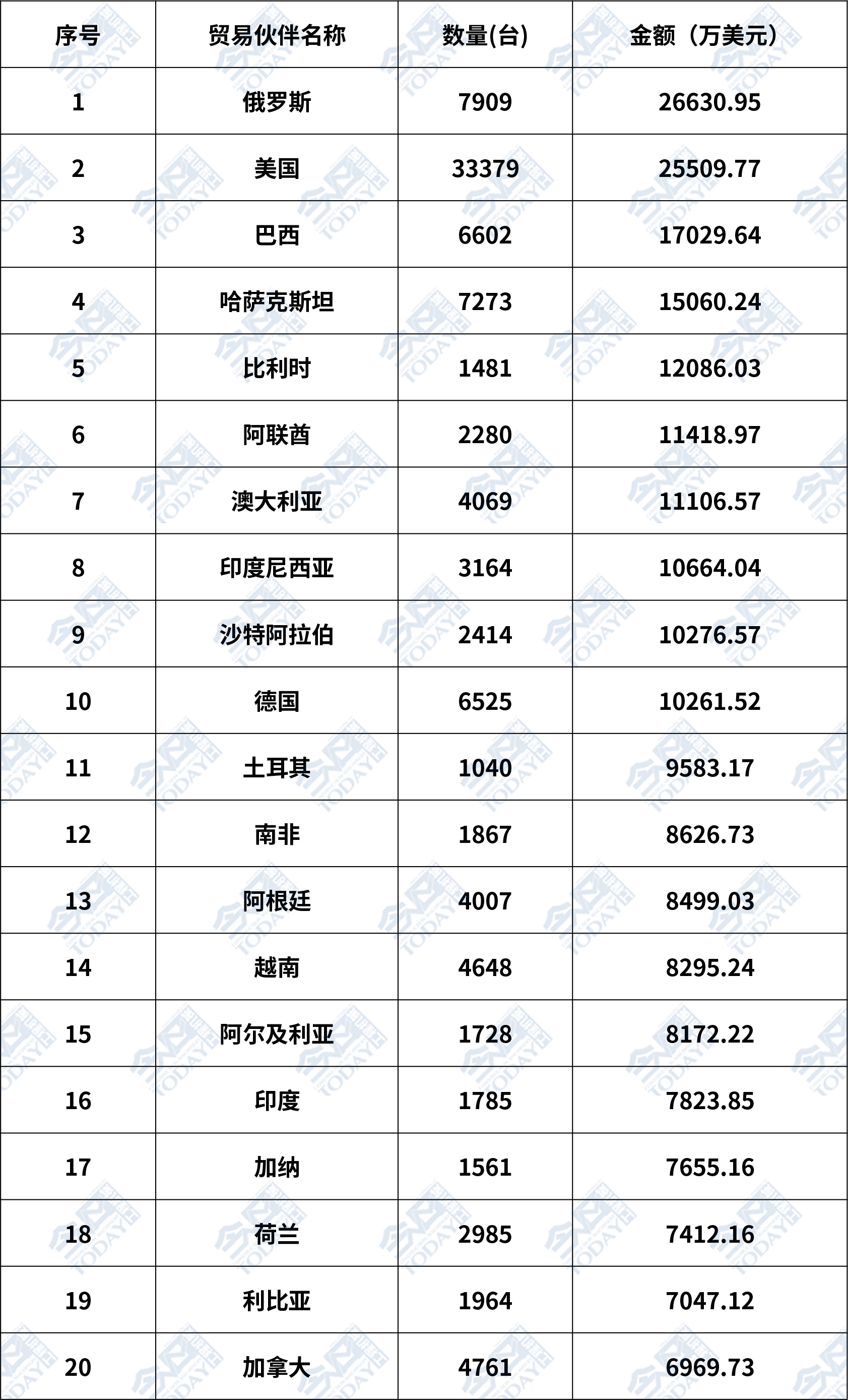 表2 2025年1—12月裝載機(jī)出口額排名前二十位國(guó)家和地區(qū)