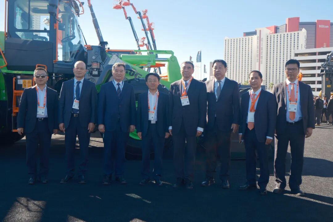 中國機械工業聯合會會長徐念沙、中國機械工業聯合會執行副會長羅俊杰、中國工程機械工業協會會長蘇子孟、中國貿促會機械行業分會會長周衛東到訪柳工展位。柳工股份黨委副書記、副董事長、總裁羅國兵,副總裁黃旭、朱斌強、李東春,工會主席李于寧等出席展會。