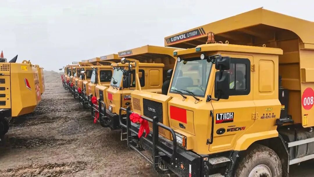 配套投入的60臺(tái)雷沃LT110H礦卡,主打大噸位、高效率轉(zhuǎn)運(yùn),搭載濰柴WP14T發(fā)動(dòng)機(jī),爬坡、起步性能優(yōu)異,整車底盤堅(jiān)固、承載能力出眾,同時(shí)兼顧燃油經(jīng)濟(jì)性與維護(hù)便捷性,配合雷沃FR750F挖掘機(jī)高效裝車,大幅提升整體土石方轉(zhuǎn)運(yùn)效率。