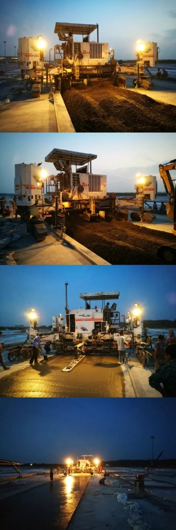 由于白天天氣炎熱,所以機手們在夜間也會照常進行施工。