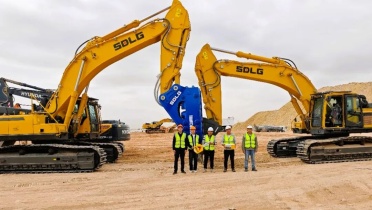 活動伊始,現場設置了專業的工程樣機展示區與商務洽談區,整齊擺放的山東臨工挖掘機、裝載機,憑借大氣硬朗的外觀、高效可靠的性能、適配非洲復雜工況的專業設計,吸引了到場嘉賓紛紛駐足觀摩、深入交流。